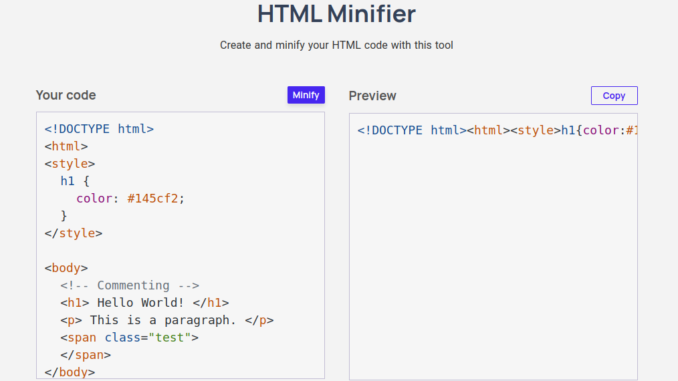 The magic of an HTML minifier is in its simplicity. Here’s how it transforms your code: